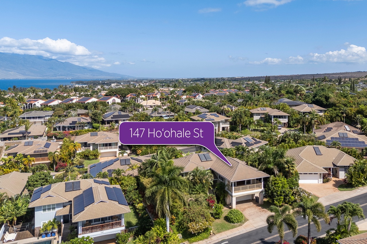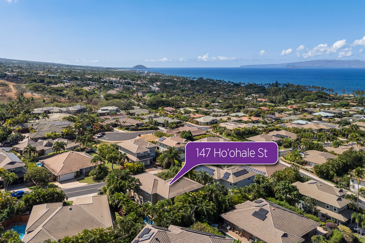 Looking for one of the best locations in Kilohana Ridge with ocean views and a true indoor-outdoor living experience with a pool? 147 Hoohale St delivers exactly that. Positioned near the top of the hill in this desirable South Kihei neighborhood, the home sits just moments from the world-renowned Keawakapu Beach. This well-designed two-story residence offers 4 bedrooms, 3 bathrooms, multiple covered lanais, and 2-car garage with generous storage. Kilohana Ridge includes underground utilities, private streets with evening lighting, and sidewalks leading toward the beach. Sweeping views of the Pacific, Molokini, Kahoolawe, and Haleakala enhance the main living area and upper lanai. The open kitchen and living room offer excellent gathering space, with large glass sliders that extend the living area to the nearly 250-square-foot covered lanai. The upper level features the primary suite and a guest bedroom with a full bath. The primary suite provides abundant natural light, a spacious walk-in closet, and a well-appointed bathroom with dual vanity and soaking tub. The lower level includes two additional bedrooms, a full bathroom, and a bright family room with custom built-in cabinetry. Outdoors, mature tropical landscaping surrounds a 45 foot pool, creating a private backyard setting ideal for relaxing or entertaining. The back yard, the mature edible landscaping, and close proximity to Wailea add to the property’s appeal. This residence offers a rare combination of views, location, space, and outdoor amenities in one of South Maui’s premier neighborhoods.