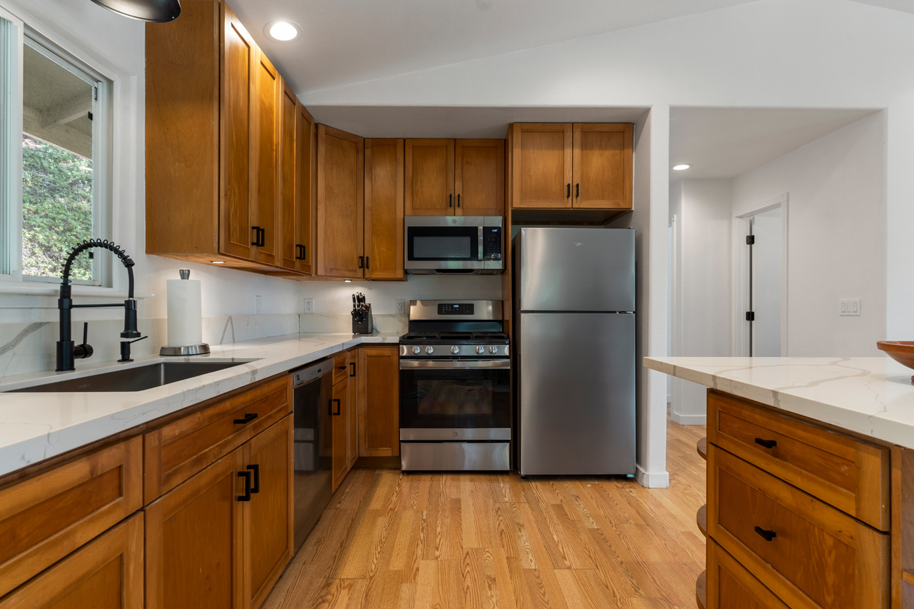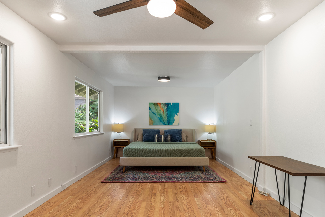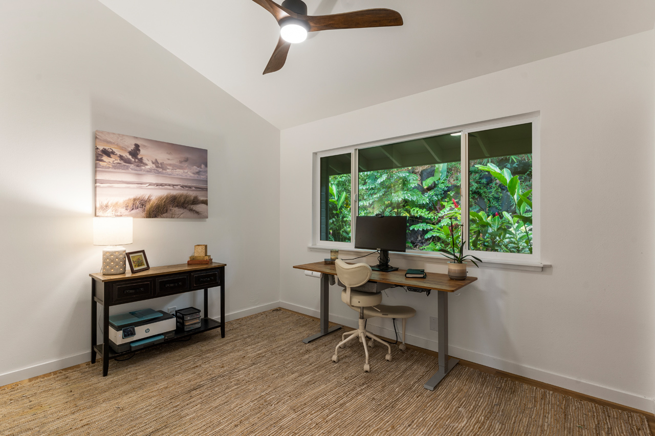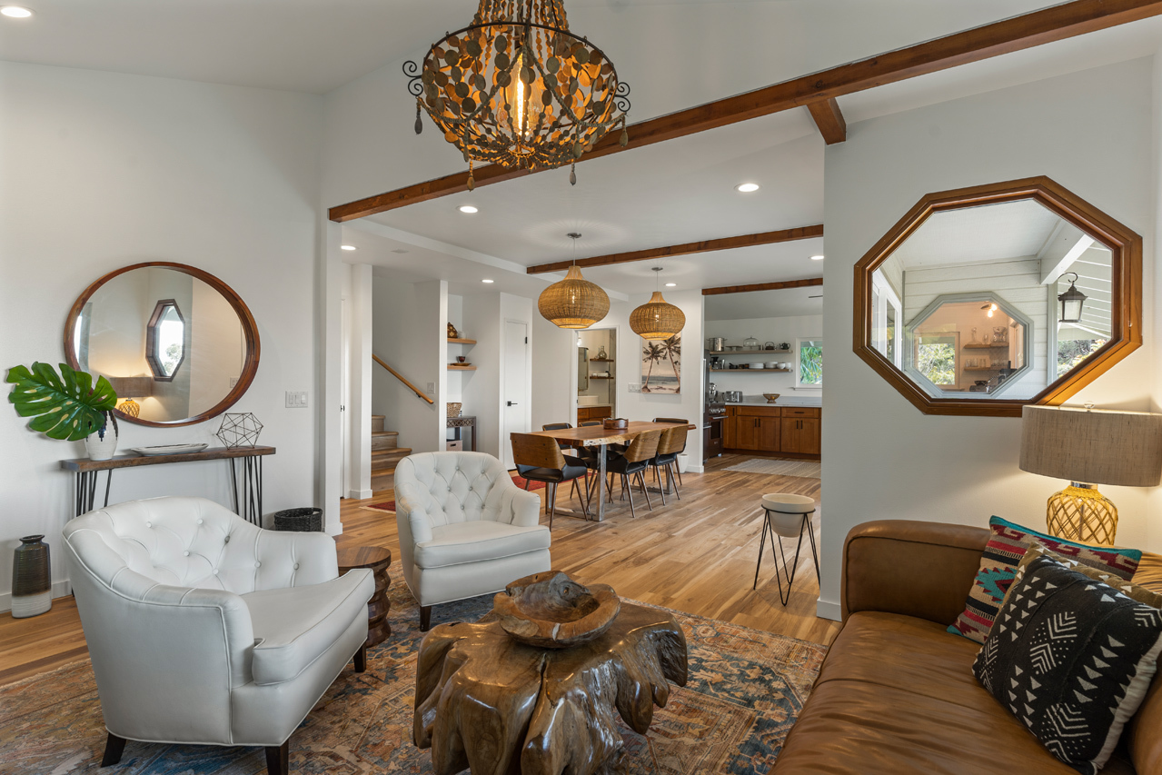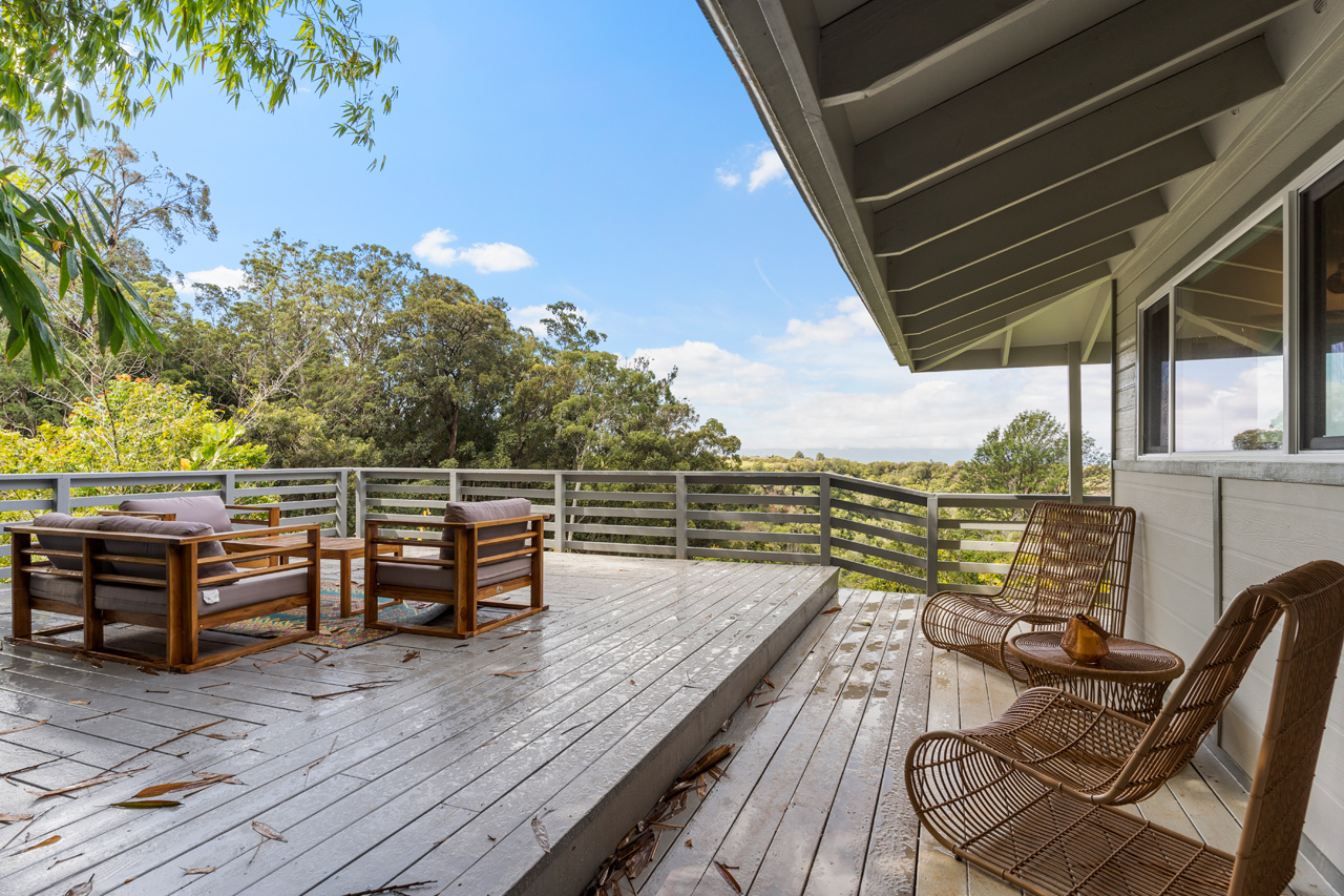 Epic ocean and mountain views from this extraordinary Haiku estate. “Town and Country” best describes 1660 Kokomo Rd. which features fully renovated residences on over 2 acres of peaceful nature and paradise. From the moment you set foot on the property, you will be instantly captivated by the vibrantly lush and tropical foliage with plentiful mature trees overlooking Maliko Gulch. There is a great separation of space between the 3bd/2ba main home and the detached 2bd/1ba accessory dwelling on the property. This is the perfect setup for multi generation living, a successful rental property, or an upcountry flower farm. The home is fully equipped with a seller owned photovoltaic system for both the main house and the cottage. The great room of the main home speaks volumes for the seller’s pride of design and ownership. This space exudes an incredible warmth with all of the natural wood textures that bring in the outdoor jungle vibes. The spacious and contemporary kitchen is well positioned with easy access to the great room and central hallway. Recent renovations include all new flooring, high energy efficient stainless steel appliances, white quartz countertops, and open shelves above the kitchen counters that will inspire artful cooking. Wood-plank vinyl flooring and freshly painted white walls accentuate the spacious feeling of the home which includes 3 bright bedrooms, 2 full baths, and a bonus room. All of the bedrooms have numerous windows allowing for solid ventilation and light. The large lanai of the main home is really an extension of your living interior which provides an extra space that blends nicely to indoor/outdoor living arrangement. The ohana features a gorgeous, lush, tropical view from its 300 sq ft covered, screened in lanai. The location of 1660 Kokomo is exceptionally convenient to both the Haiku Cannery Marketplace and Historic Makawao Town. Lots of nearby restaurants, food trucks, art galleries, fine boutiques, and overall upscale amenities. The Montessori School of Maui, Seabury Hall Preparatory Academy, and Ho'okipa Beach Park are all within a 10 minute drive of this property. Finely appointed and being offered fully furnished by the sellers.