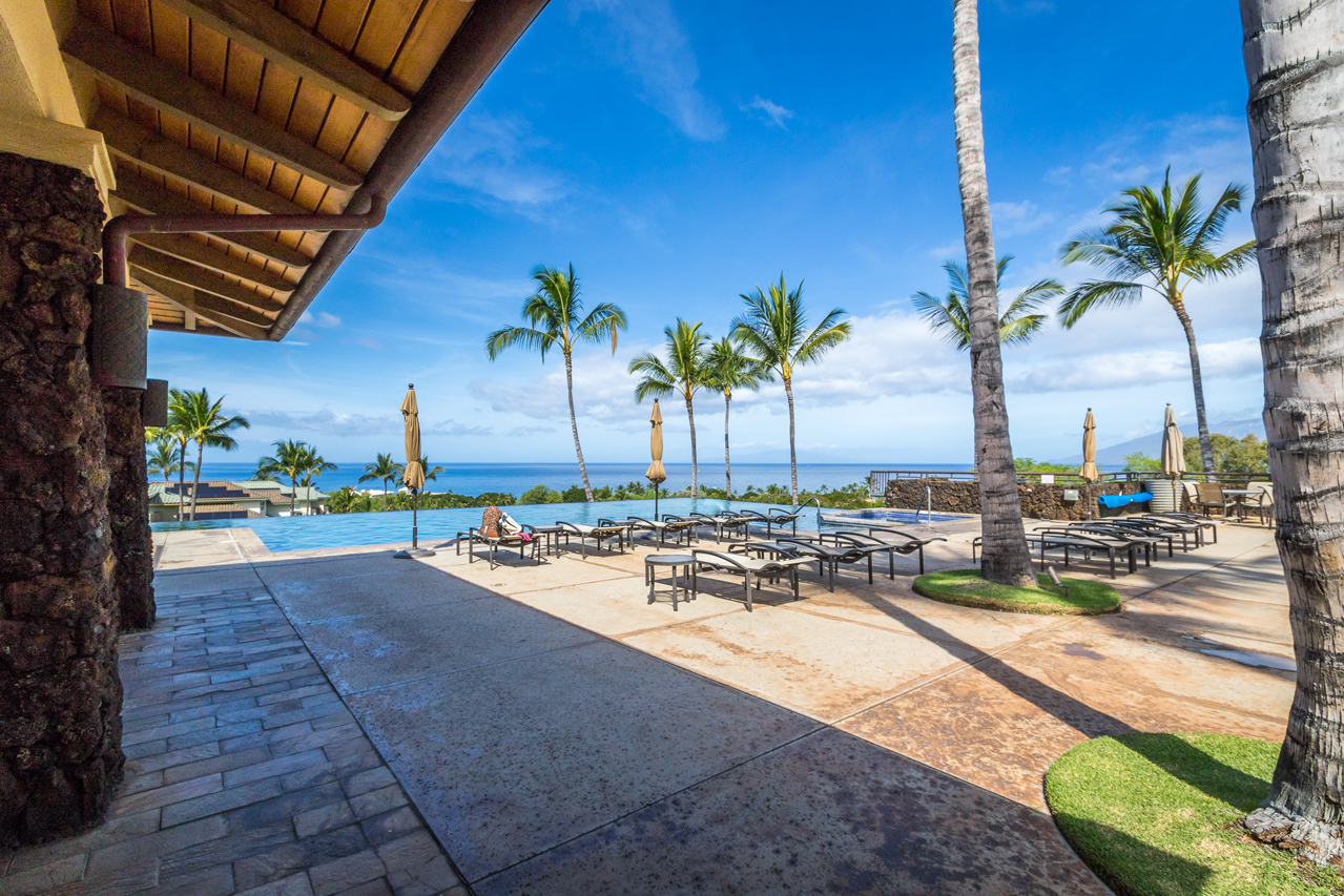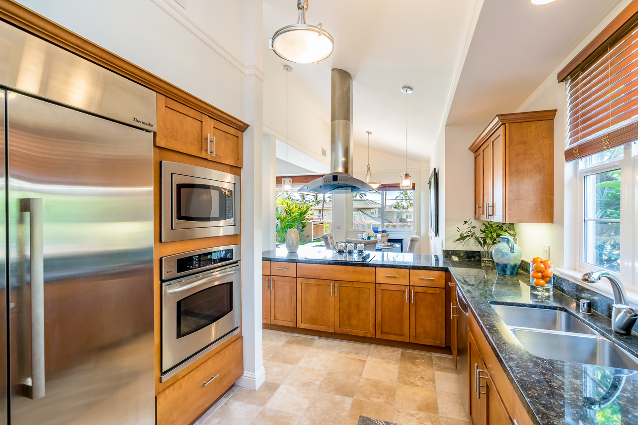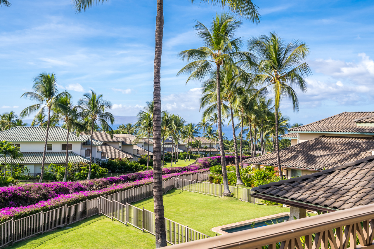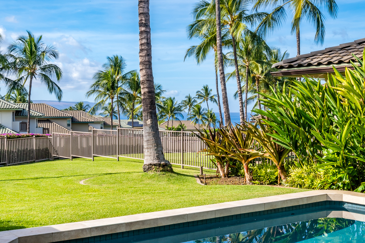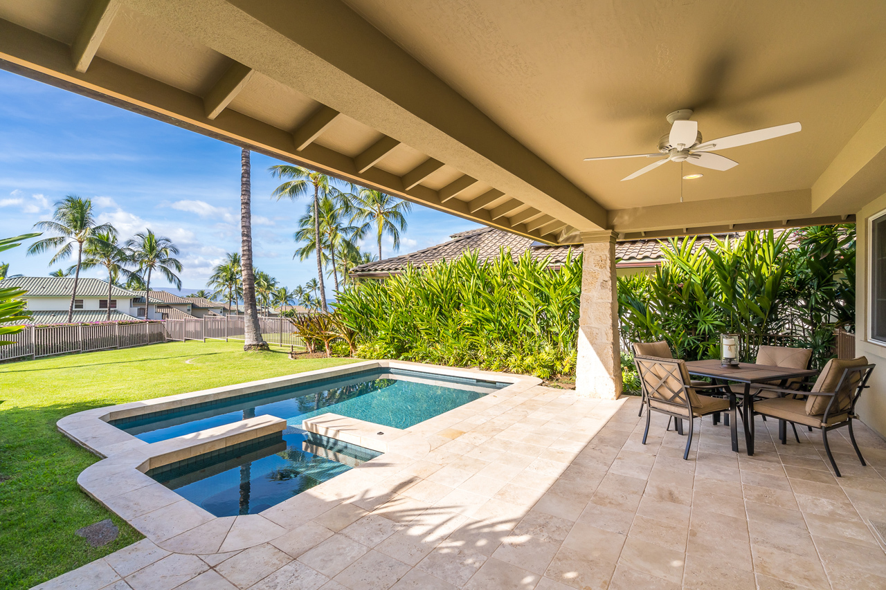 Experience the very best Kai Malu Wailea has to offer in Villa 17B. Perfectly framed ocean views out towards the Pacific that will inspire you. Located in the heart of the Wailea Resort, this private Maui getaway is truly a residence of distinction. Villa 17B features one of the largest fenced-in yard areas in the community, as well as it’s own private pool and spa. There are very few homes at Kai Malu that offer this much privacy. When the surf is up, you can actually hear the waves breaking peacefully up the ravine. The interior of the villa has been professionally decorated and offers an elegant and contemporary feel. Finely appointed and being offered fully furnished by the sellers with over $150K in owner upgrades. There are custom Mahogany railings and valance with electronic power shade. The entire villa, including the garage, has been freshly painted. Brand new and stunning cherry wood floors featured in the downstairs of the home. The kitchen is a chef’s dream! Oversized Thermador refrigerator, gorgeous Alder Chestnut cabinets and Verde Fontain granite counter tops are featured for your modern cooking convenience. The downstairs covered lanai was extended with custom Travertine floors and flows out nicely to the private greenbelt and pool area. The upper level master suite also has its own private lanai and offers incredible ocean views. Nearby are all of the best Wailea amenities, including first-class restaurants, 3 championship golf courses, tennis facilities, upscale shopping opportunities and miles of white sand beaches and ocean.