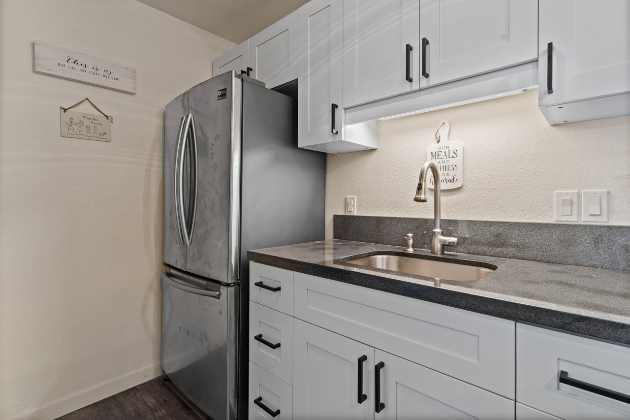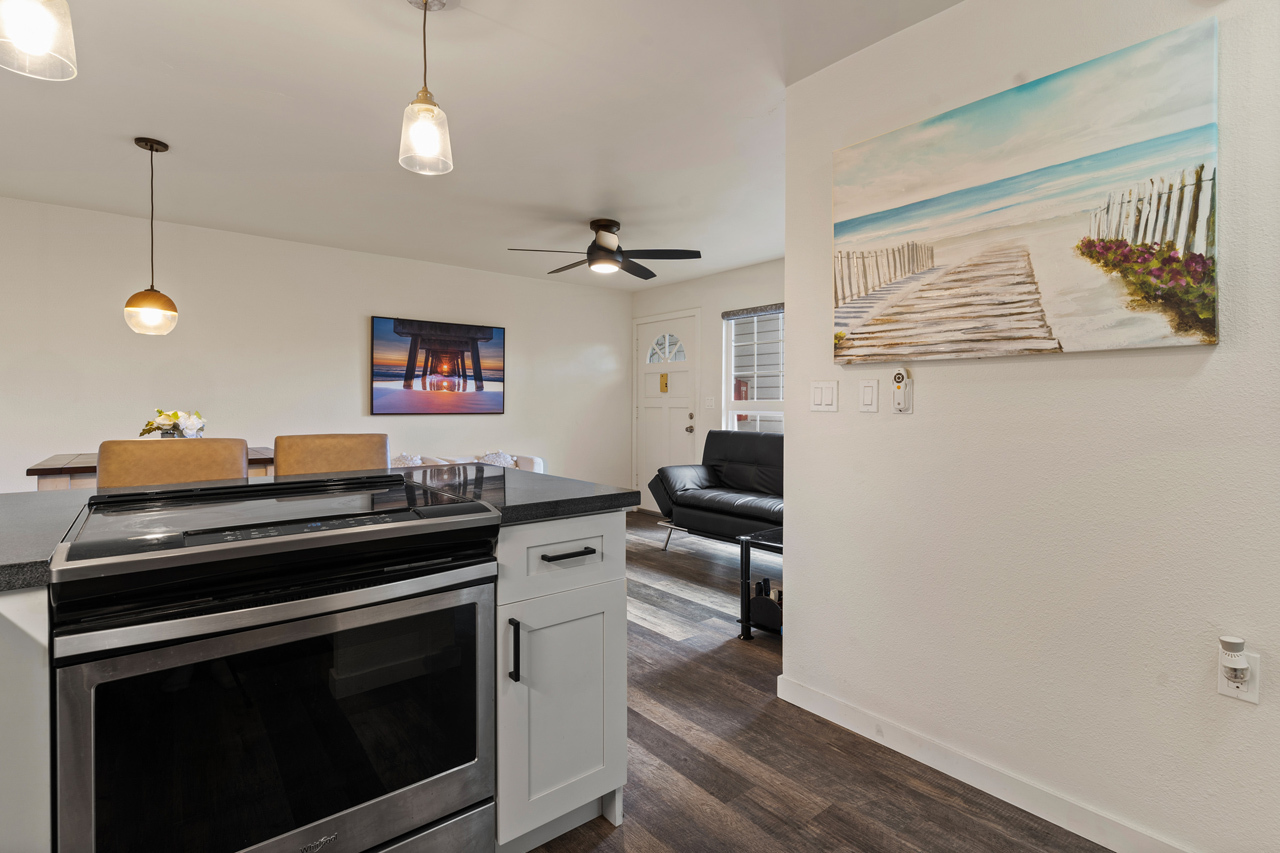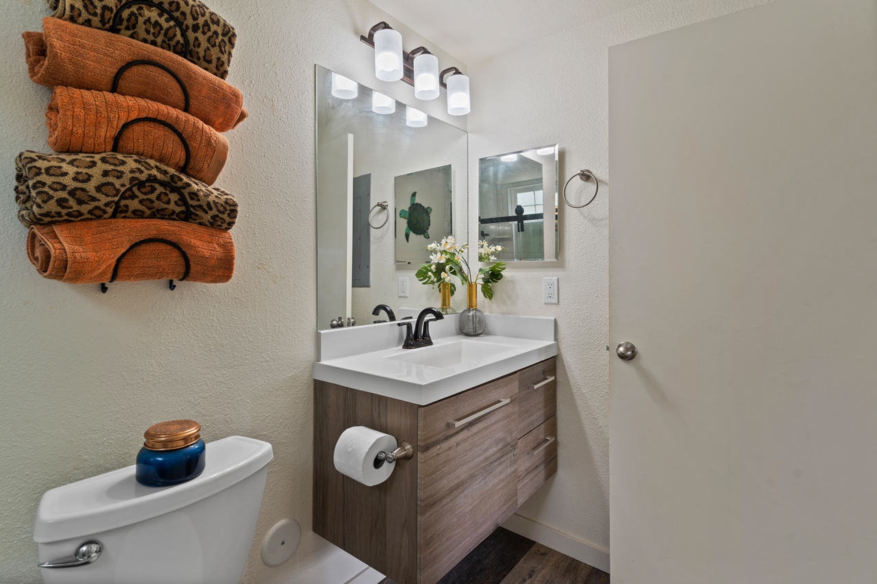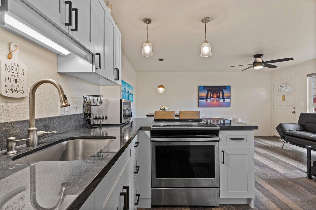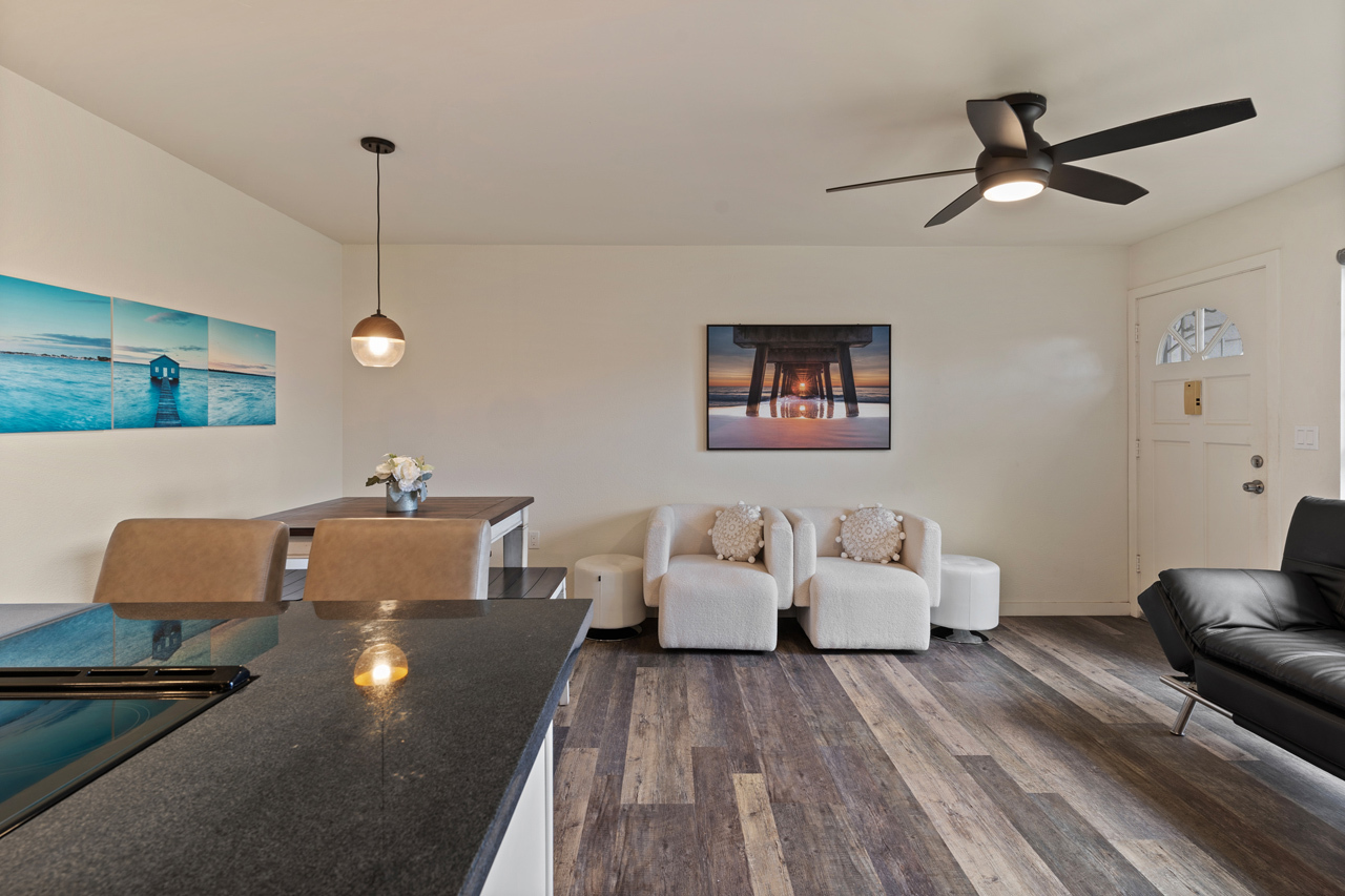 Welcome to this charming ground floor Keonekai Villages retreat in Kihei! One of the nicer remodels you will ever see in the community. This delightful 2 bedroom, 1 bath condo boasts a spacious and airy floor plan with plenty of natural light. You will love coming home to this beachy corner unit location which offers extra windows in both the primary bedroom & primary bathroom. The convenience of the ground floor location offers easy access to the outdoors and a tranquil garden view from the front door, creating a peaceful retreat for relaxing and entertaining. The bedrooms are generously sized, with ample closet space, and the bathrooms and the kitchen have been tastefully updated with modern finishes. There are so many things to love about this condo. Completely renovated in 2019 with new luxury vinyl plank flooring throughout. Kitchen remodel features custom cabinets accented with gray color granite stone countertops which extend to the breakfast bar. High energy efficient stainless steel appliance package; bathroom features a floating vanity countertop, new lights, toilet and tub with surround tile walls; all interior walls have been re-textured and repainted; contemporary look ceiling fans with remote control in all rooms; new water heater; popcorn ceilings removed; new baseboards and light switch covers, and more! Located in a prime South Maui location, just minutes from world-class beaches, shopping, dining, and entertainment, this is the perfect place to call home or use as a rental income property. Don't miss this opportunity to experience the best of Maui living!