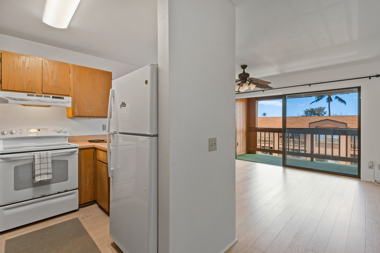 Imagine owning a studio just a stone's throw from the ocean! This charming top-floor corner unit in Maui Lani Terraces is the perfect retreat for those who want to be close to it all. The quiet location allows the ideal setting to enjoy the ocean view. Located in the heart of Honokowai, this property offers easy access to the Farmers market, coffee shops, restaurants, shopping and the beach. Even closer is the community pool pavilion for a dip without having to leave home.